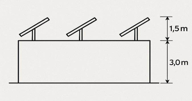 Nach der Regelung wird das Anbringen oder Aufstellen von Anlagen zur photovoltaischen oder thermischen Solarnutzung auf Dächern bis zu einer Anlagenhöhe von 1,5 m bei Vorliegen der gesetzlichen Voraussetzungen nicht auf die Wandfläche angerechnet. Daher können solche Anlagen künftig ohne Einhaltung eigener Abstandsflächen insbesondere auf abstandflächenrechtlich privilegierten Grenzbauten unter Ausnutzung der gesamten Dachfläche bis an den äußeren Rand der Außenwände errichtet werden (s. Abb.). Die Anwendung der Vorschrift bei solchen privilegierten Grenzbauten sieht § 6 Abs. 1 S. 2 Hs. 2 auch ausdrücklich vor.
